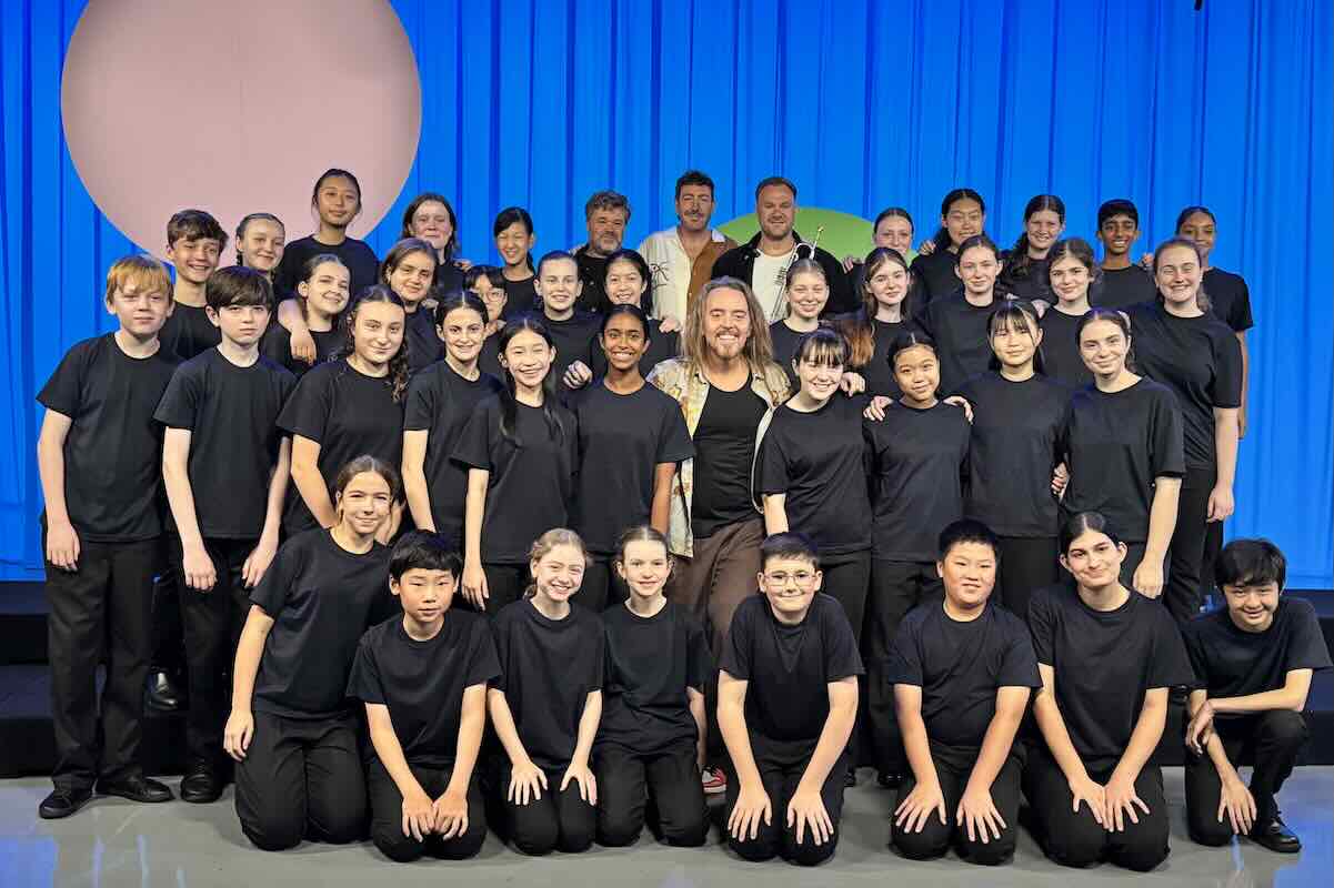 Tim Minchin and Sydney Childrens Choir. Photo courtesy ABC Education