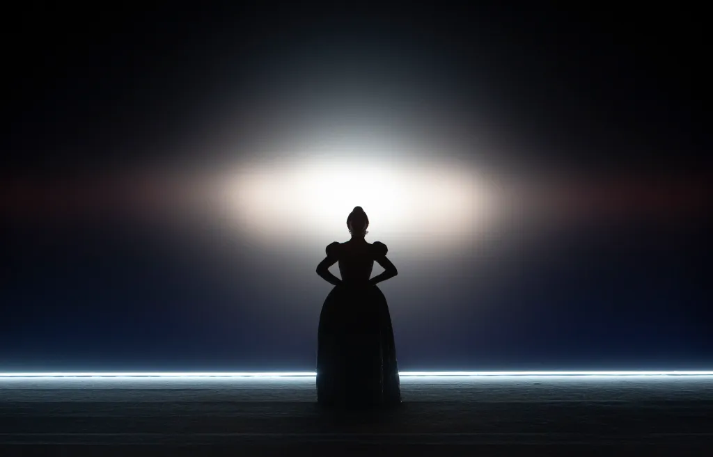 The show is a three-part monologue in French, which appears strange at first glance. However, when Mary reveals a nostalgic longing for her fleetingly happy childhood in France, coupled with her contempt for Scotland and England despite being in line to rule both, Darryl Pinckney’s French text becomes the seam for Mary’s tempestuous, complex reflection on her tragic fate.